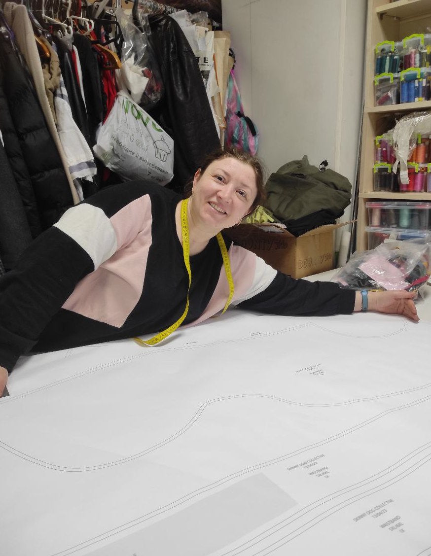 Nataliya had been running her succesful one woman sewing studio in Kyiv for years before the war started. But the war had left her with little work besides making bulletproof vests.