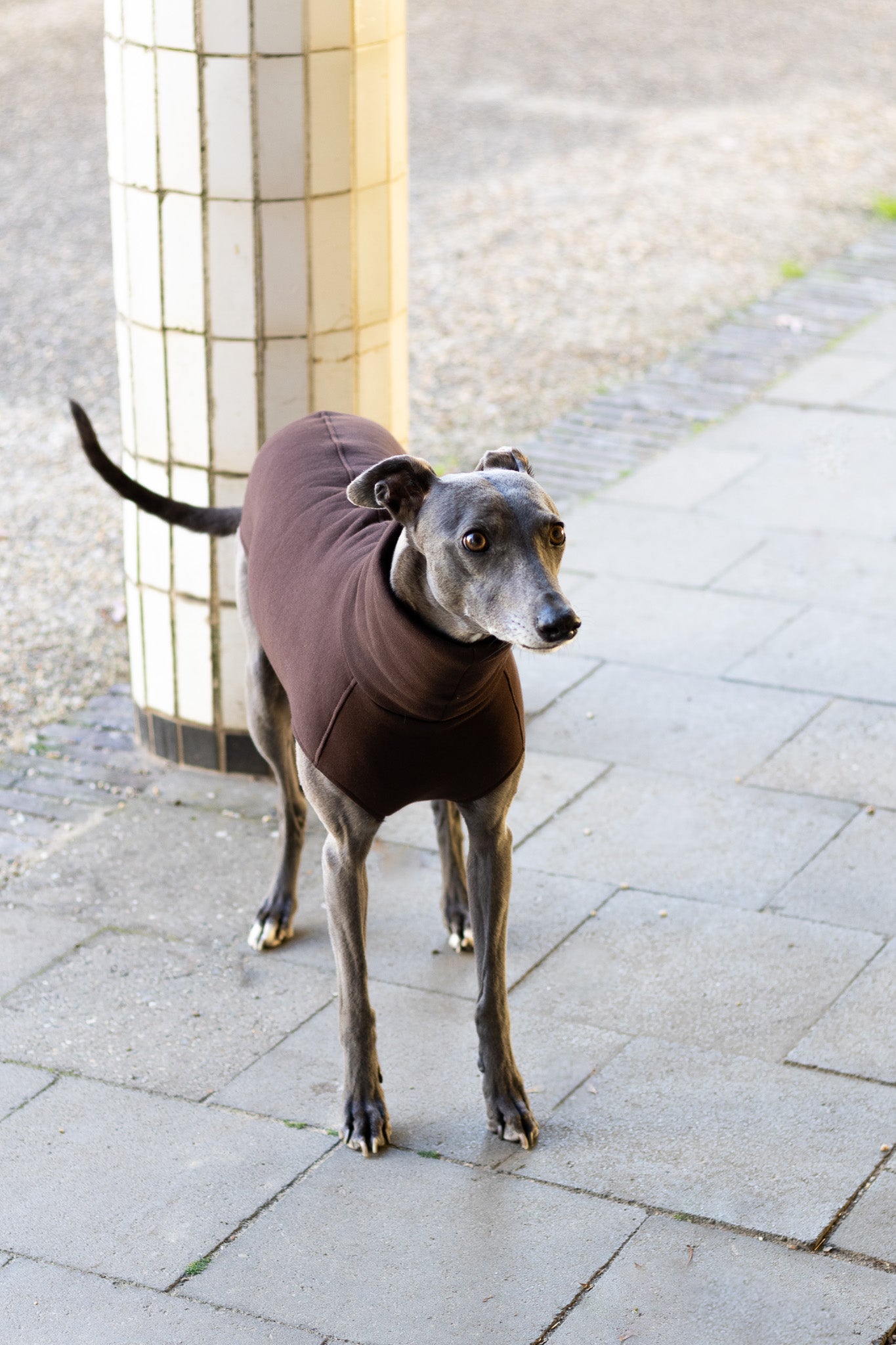 Made out of a warm organic cotton fabric with a fleece layer, this everyday long sleeved jumper keeps your hound warm without compromising their agility and style. The long sleeves add extra warmth, which makes it perfect for winter walks and camping trips.